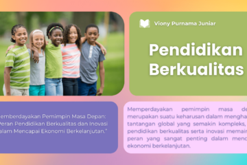 Memberdayakan Pemimpin Masa Depan: “Peran Pendidikan Berkualitas dan Inovasi dalam Mencapai Ekonomi Berkelanjutan.” Viony Purnama·Agustus 27, 2024Memperdayakan pemimpin masa depan merupakan suatu keharusan dalam menghadapi tantangan global yang semakin kompleks, dan pendidikan berkualitas serta inovasi memainkan peran yang sangat penting dalam mencapai ekonomi berkelanjutan. 0 Komentar·dibaca normal 1 menit